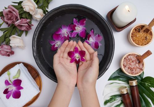 Displaying images of the hotel's spa facilities, including massage rooms, relaxation areas, steam rooms, and other wellness services